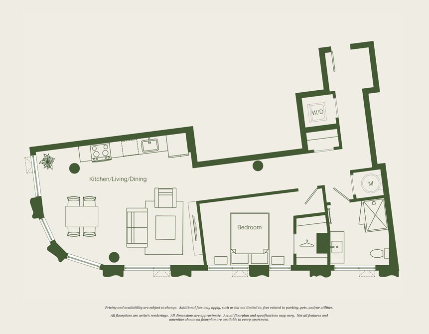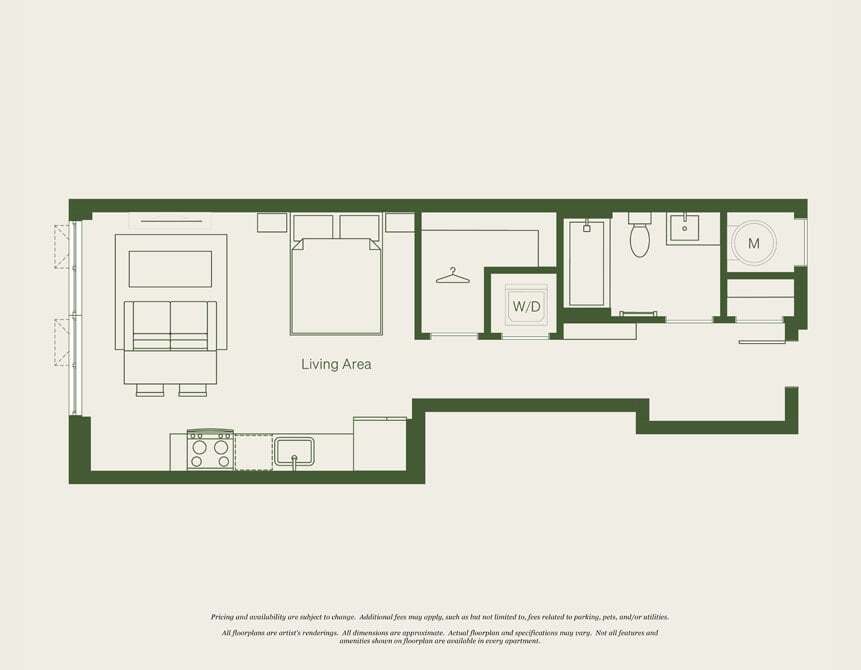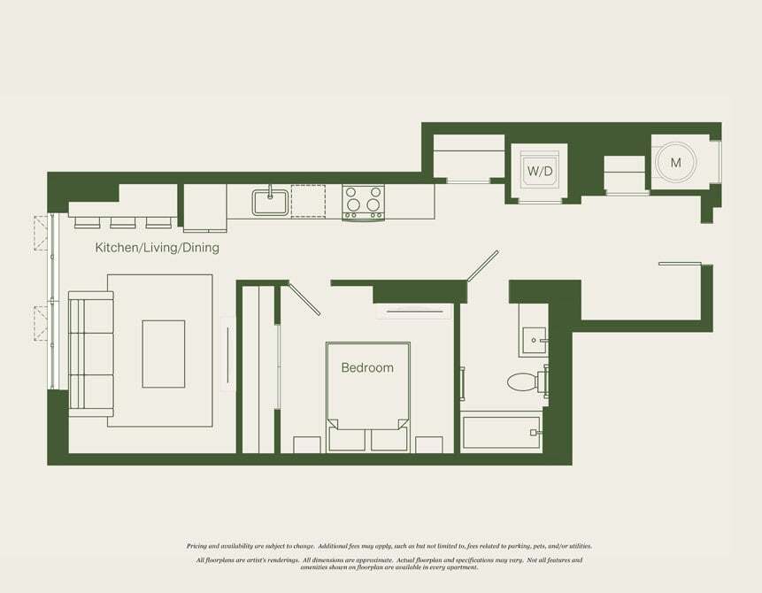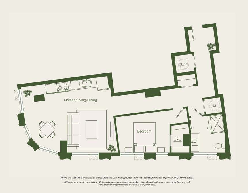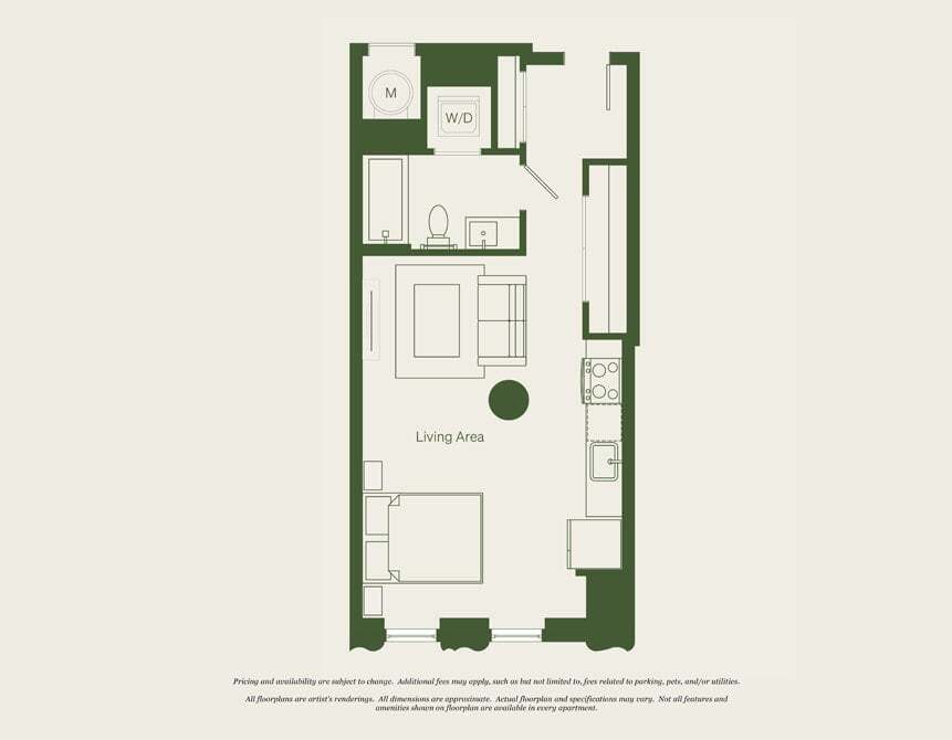 Studio, 1 Bath, 556 sq ftAvailable NowLargest StudioThis is the largest Studio at this PropertyModel Gallery