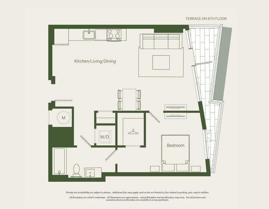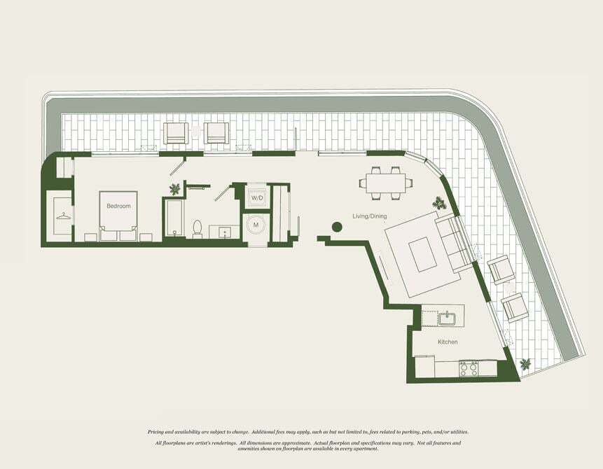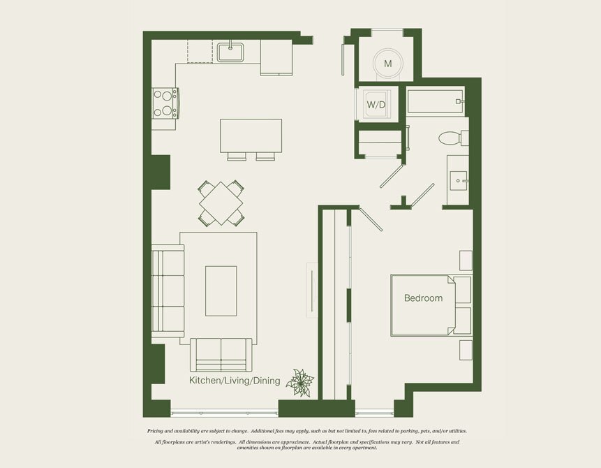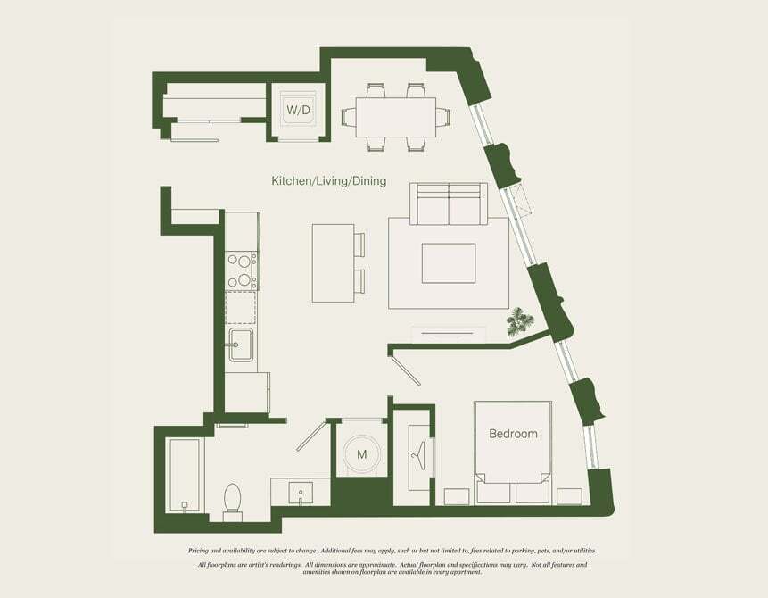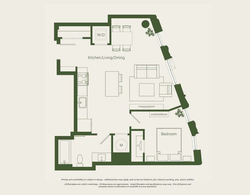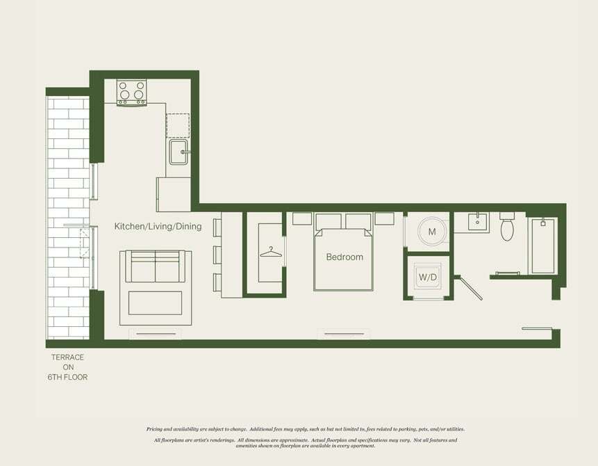 Studio, 1 Bath, 556 sq ftAvailable NowLargest StudioThis is the largest Studio at this PropertyModel Gallery