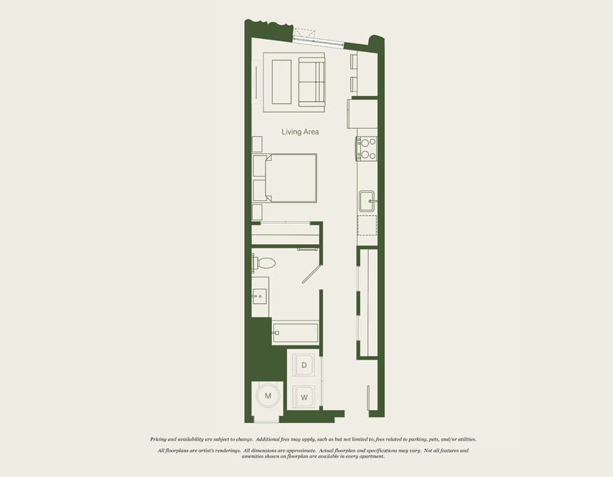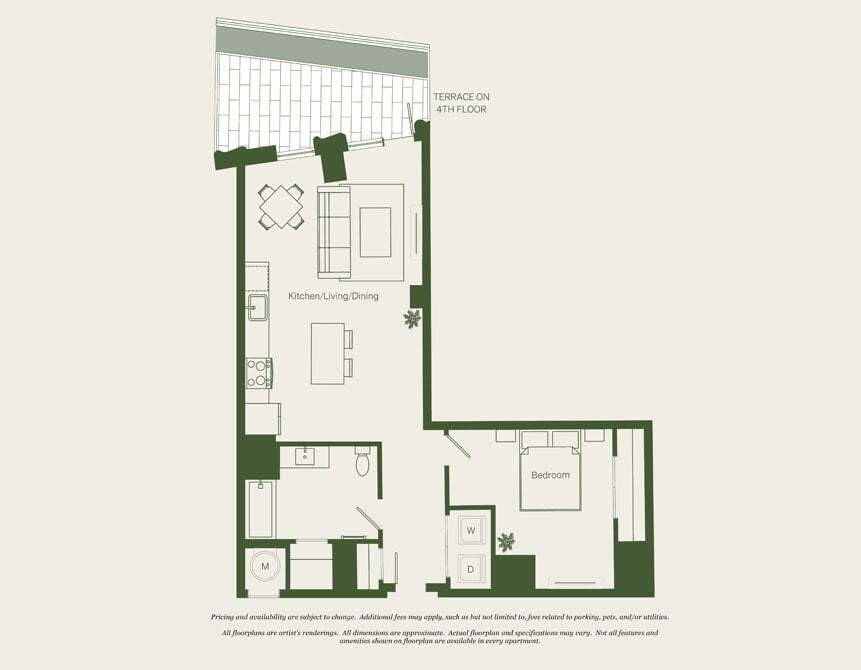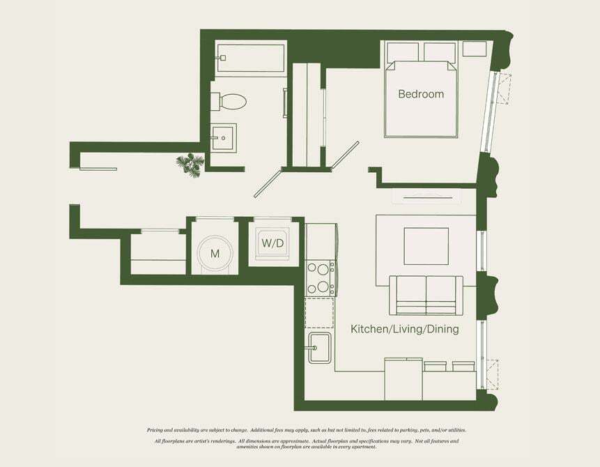 Studio, 1 Bath, 496 sq ftAvailable NowModel Gallery