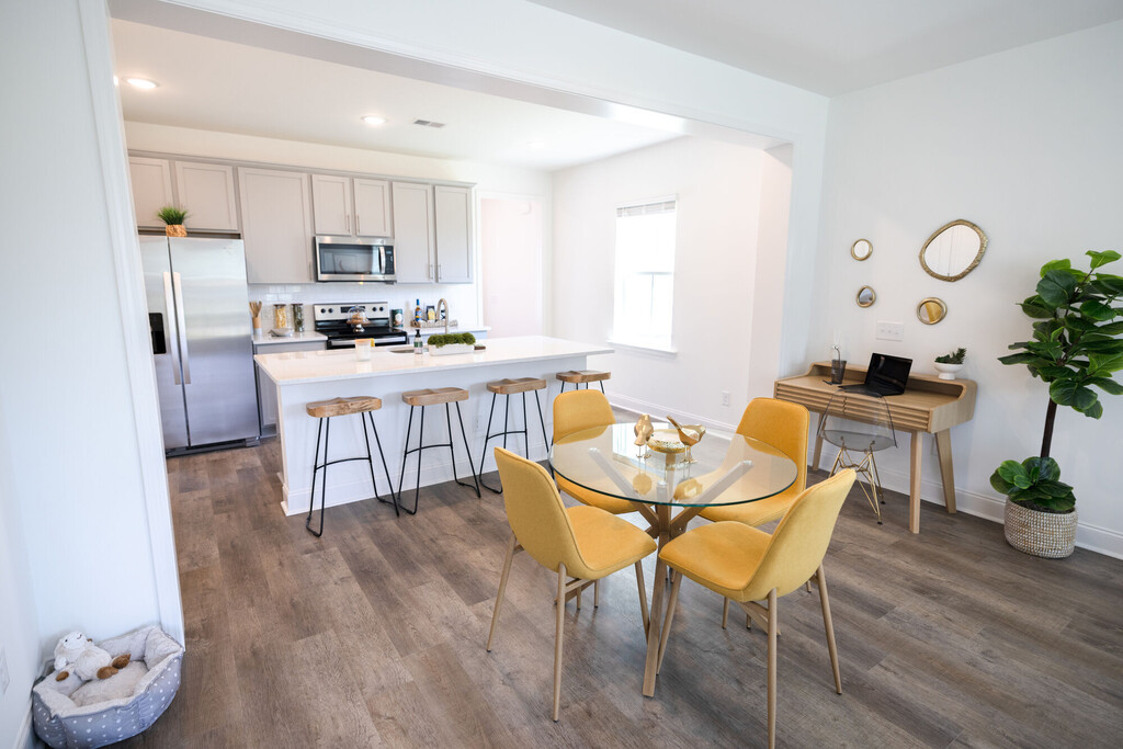 Retreat to elevated living at Reve on the Creek, a brand new townhome community in Charleston, SC. We aim to bring your dreams of a comfortable and sophisticated waterfront home to life. Our spacious townhomes blend modern elegance and natural beauty. Nestled in a prime location, these thoughtfully designed residences offer a unique sanctuary with spacious floor plans. Choose from one of our two- and three-bedroom townhomes meticulously crafted for you. Beautiful wood-style flooring and an expansive living area make for a jaw-dropping entrance inside each brand-new floor plan. As you explore the rest of your new home, you will be blown away by the gorgeous gourmet kitchen, attached garages, and time-saving in-home features. Outside, our community welcomes you with an array of amenities in a calm and serene setting by the water. Take a break from your busy schedule by enjoying scenic views of the creek or pond, strolls along the lush nature trails, or playdates with your pup at the leash-free dog park. Here, only good days lie ahead. Reve on the Creek’s townhomes for rent provides a serene retreat away from the noise but close to all the action. Take in the natural beauty of Rantowles Creek, lush parks, and Stono River close to home, or venture into the heart of Charleston in 20 minutes for endless shopping, dining, and entertainment. Call now to schedule your personalized tour.
