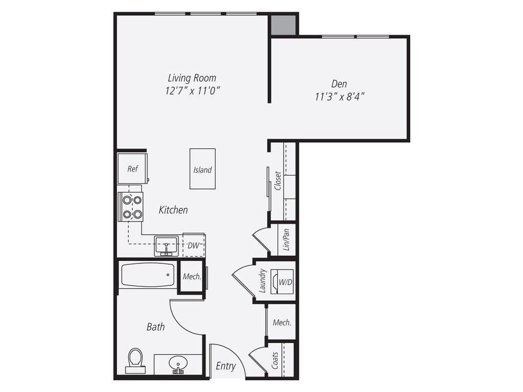 Apartment Model: S2L ADACall For RatesStudio, 1 Bath, 756 sq ftUnavailableS2L ADA - Floorplan 1 1 Bedroom