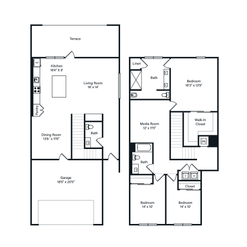 1 Bed, 2 Baths, 1345 sq ftAvailable NowLargest 1 BedroomThis is the largest 1 Bedroom at this PropertyModel Gallery
