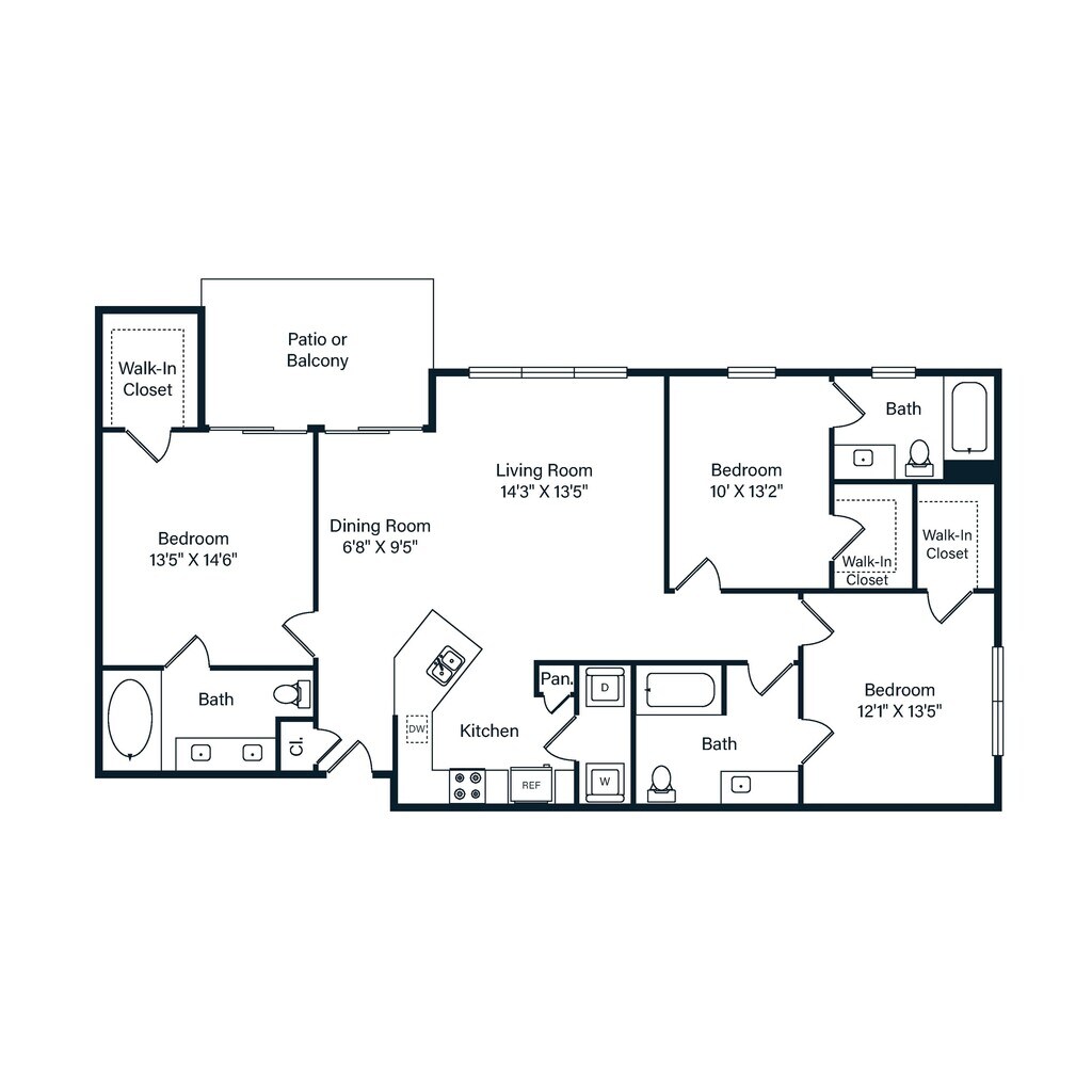 1 Bedroom to 3 Bedroom Apartments at Reveal Lake Ridge currently range from $1,241 to $2,564