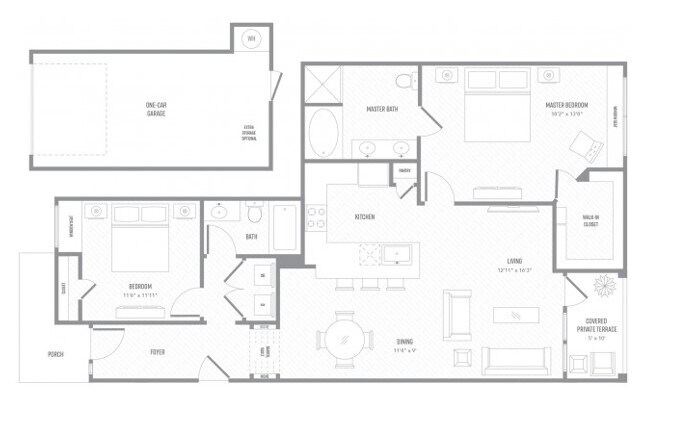 1 Bed, 1 Bath, 841 sq ftAvailable NowModel Gallery
