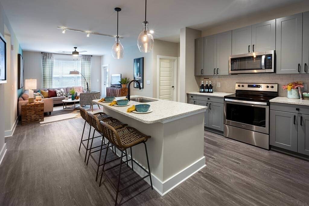 Studio to 3 Bedroom Apartments at Revel Ballpark currently range from $1,505 to $3,284