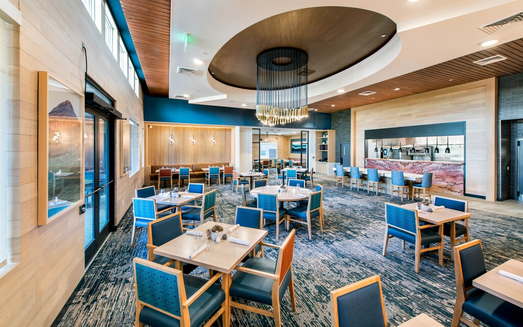 DON’T RETIRE, REVEL At Revel, you’re more than just a resident; you’re a member of a thriving independent living community that feels more like a retreat than retirement. Your resident membership includes everything you need to live life on your own terms in this empowering community, including your apartment home, amenities, dining, programming and events, Travel Club access, 24-hour concierge, weekly housekeeping and more. REVEL LIVING Research has proven that your aging journey is mostly determined by your lifestyle. That’s why we’ve created Revel Living, a lifestyle culture based on the four pillars of wellness, that, together, keep you connected, engaged and curious. Whether you are interested in a book club, woodworking, yoga, learning a new language, exploring botanical gardens or even teaching a class, at Revel, you will have the opportunity to pursue your interests and passions to get all the life out of your years. PERSONALIZED SERVICES & AMENITIES It’s your life and you deserve to revel in it. That’s why our wellness services and community amenities are designed to fit your personal style. Rejuvenate with a personalized treatment in our spa or full-service salon. Get fit in our state-of-the-art fitness center dedicated to cardio, strength training and group fitness classes that optimize your health. Catch the latest movie in our theater. Practice arts and crafts in our creative studio. Or just relax in the heated saltwater pool and spa. At Revel, you’ll also enjoy resort-style services including a 24-hour concierge, housekeeping, maintenance and complimentary transportation. RESTAURANT DINING We’ve created culinary experiences that are sure to delight with seasonal menus cooked to order and exceptional service. Our flexible dining options allow you to choose when and where you want to eat, whether that’s in your home, one of our restaurants, or our outdoor dining area. Enjoy a made-from-scratch meal at Ovation, our modern-American restaurant, or grab a signature cocktail and a pub classic with a twist in The Social Club, our spirited pub. COMFORTABLE LIVING Your home is where you relax and unwind. It’s where you host memorable celebrations, friendly gatherings and quiet nights in. It’s your place to make your own. That’s why the apartment homes at Revel include stylish details like modern plank flooring and oversized windows, and everyday conveniences like gourmet kitchens and washers and dryers. We invite you to experience a new brand of independent living and see why Revel is worthy of being called home.