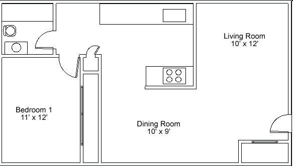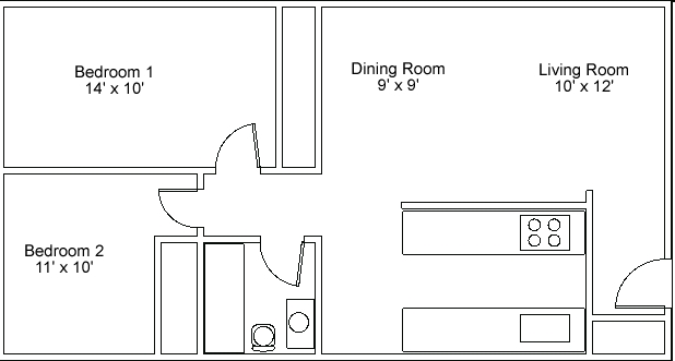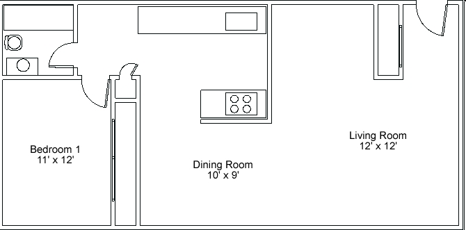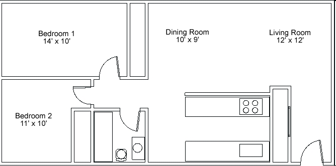 1 Bed, 1 bath - Floorplan 1 2 Bedrooms