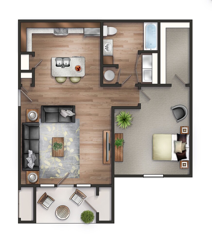 1 Bed, 1 Bath, 849 sq ftModel Gallery