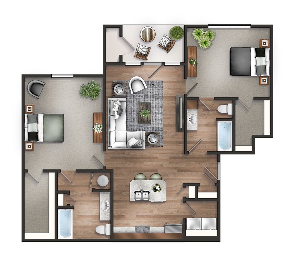 1 Bed, 1 Bath, 824-864 sq ftAvailable NowModel Gallery