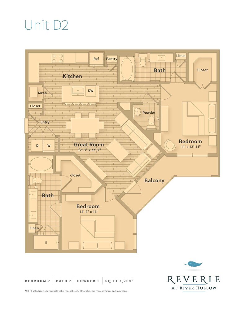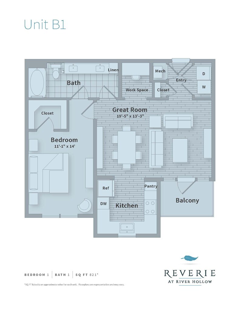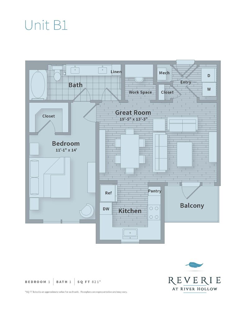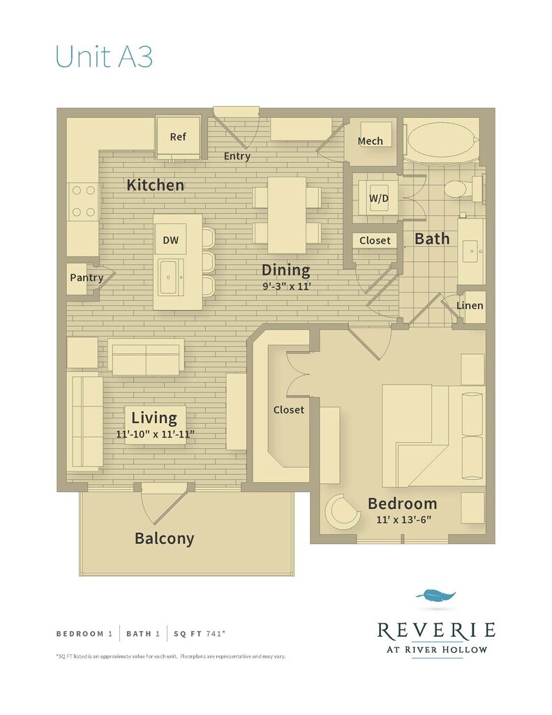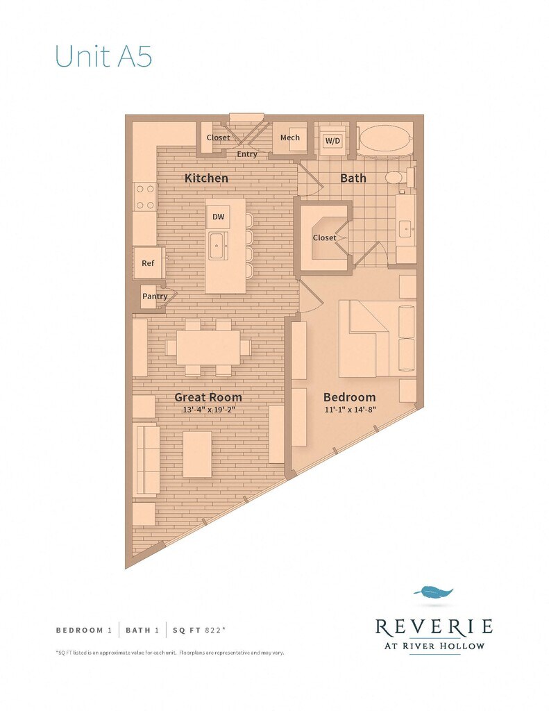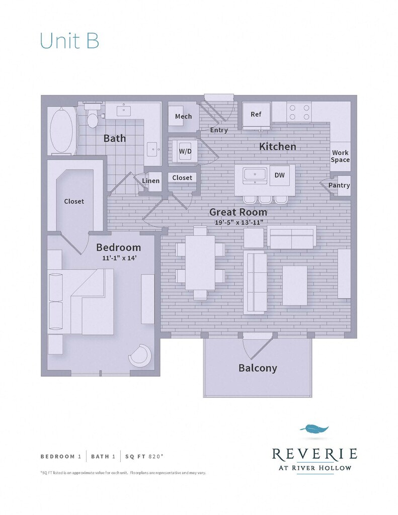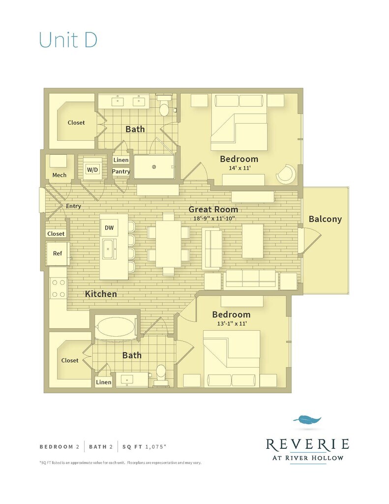 Reverie at River Hollow offers 1 to 3 Bedroom apartments starting from $1,612 and having 558–1,957 sq ft. Here is the current pricing and availability: