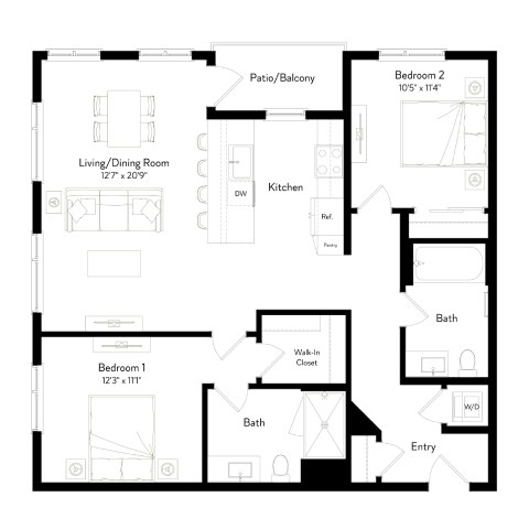 1 Bed, 1 Bath, 766-873 sq ftAvailable NowModel Gallery