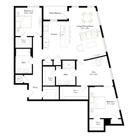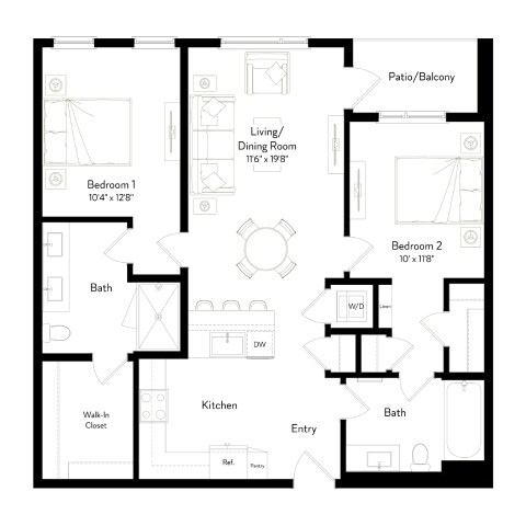 1 Bed, 1 Bath, 706-708 sq ftAvailable NowModel Gallery