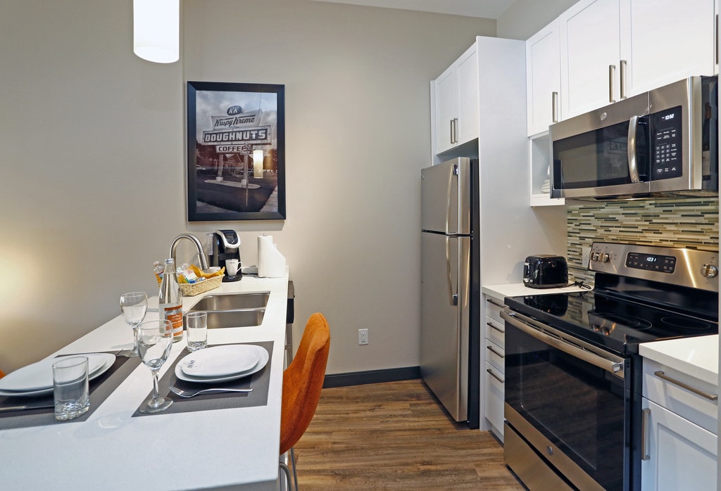 The furnished executive apartment residences combine the comfort, amenities and design of boutique extended hotels in Raleigh NC with the cutting- edge technology that allows guests to easily personalize their stay. Each residence includes a fully-equipped kitchen, relaxing and entertaining living space, one or more bedrooms with premium bed and linens, and generous bathrooms including luxury appointments and walk-in shower. Each property combines active community spaces, such as lobbies and roof-top terraces, with a strong connection to surrounding business and lifestyle amenities.