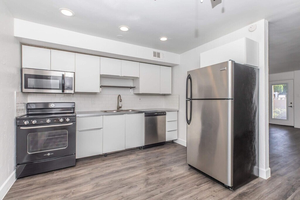 Revival Midtown is excited to offer spaciously designed one bedroom apartment homes in the heart of Biltmore. All of our homes were designed with our residents in mind. Enjoy cooking in an all electric kitchen equipped with updated stainless steel appliances, unique plank flooring or step outside and enjoy private front patios, a sparkling pool and ample parking!