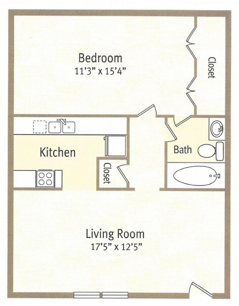 1 Bed 1 Bath Plan A