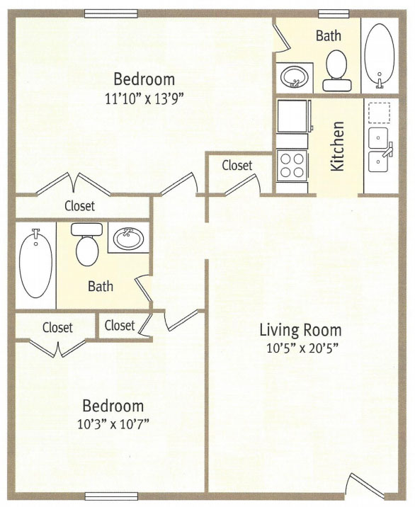 2 Bed 2 Bath Plan A