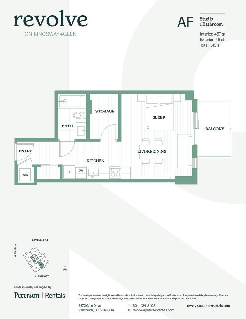 Expertly envisioned by Peterson, Revolve offers a rare opportunity to live in a brand-new, purpose-built rental on Kingsway. Rising 14 stories to redefine the skyline, Revolve acts as the axis of culture and connection – where the vibrant energy of the Kingsway corridor pairs with a contemporary vision of distinctly refined living. Managed by Peterson Commercial.
