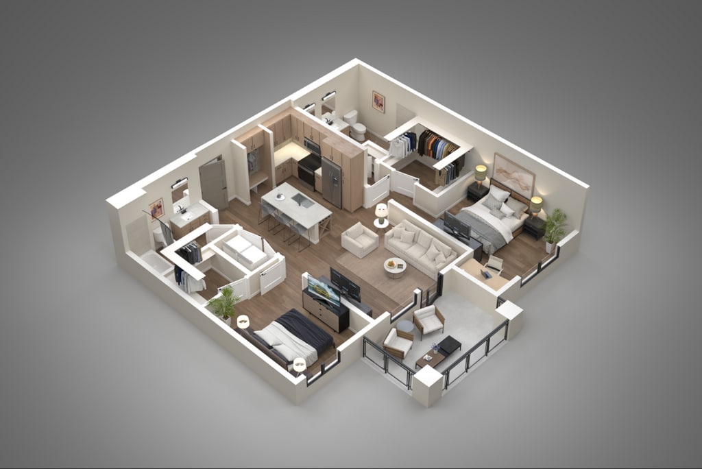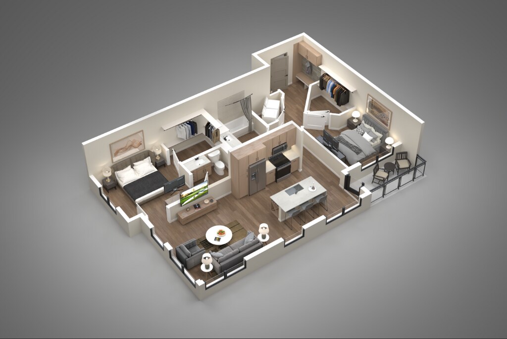 2 Beds, 2 Baths, 1029 sq ftModel Gallery