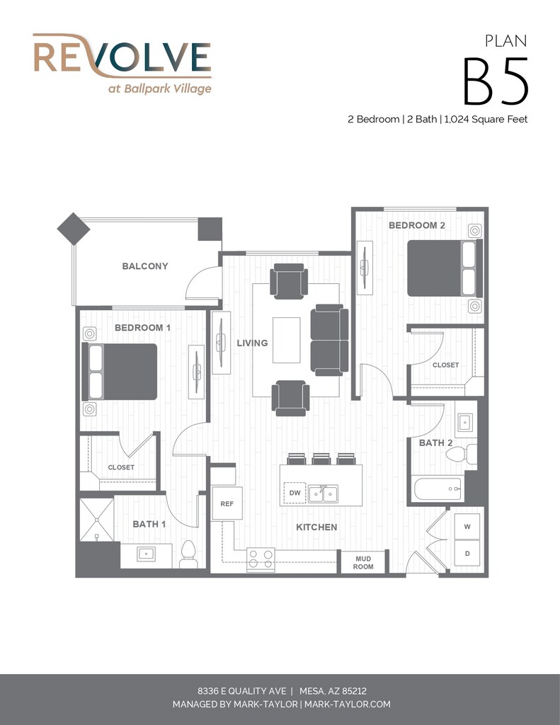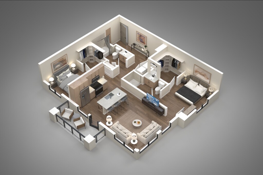 2 Beds, 2 Baths, 1024 sq ftModel Gallery