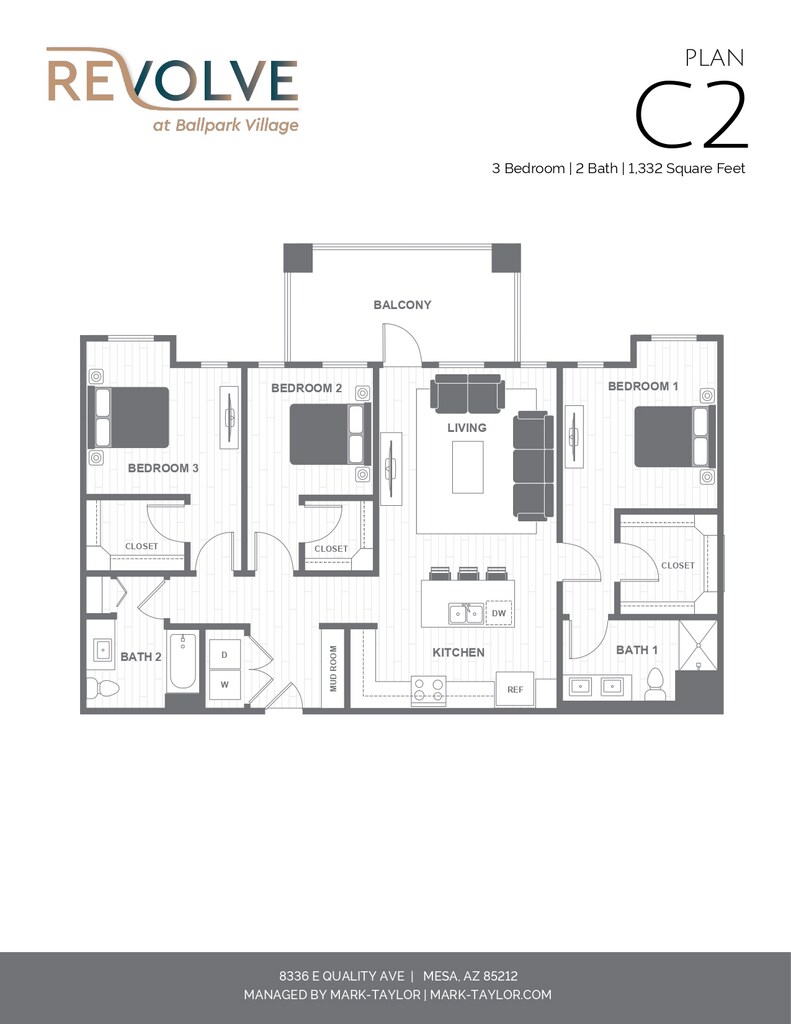Experience a lifestyle that revolves around you at Revolve at Ballpark Village. Our modern 1, 2, and 3 bedroom apartments in Goodyear, AZ, blend elegant design with everyday convenience. Inside, each home features upscale finishes, open-concept layouts, and private outdoor spaces that elevate your daily living. Outside, you’ll find an impressive collection of resort-style amenities built for connection, relaxation, and recreation. Perfectly situated near Goodyear Ballpark, Estrella Mountain Regional Park, and top dining and shopping destinations, Revolve puts you close to everything that makes this area thrive. Luxury. Location. Lifestyle. Welcome to Revolve at Ballpark Village.