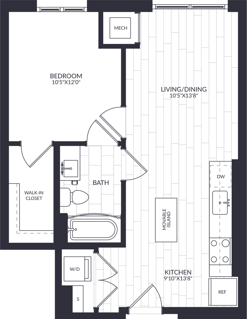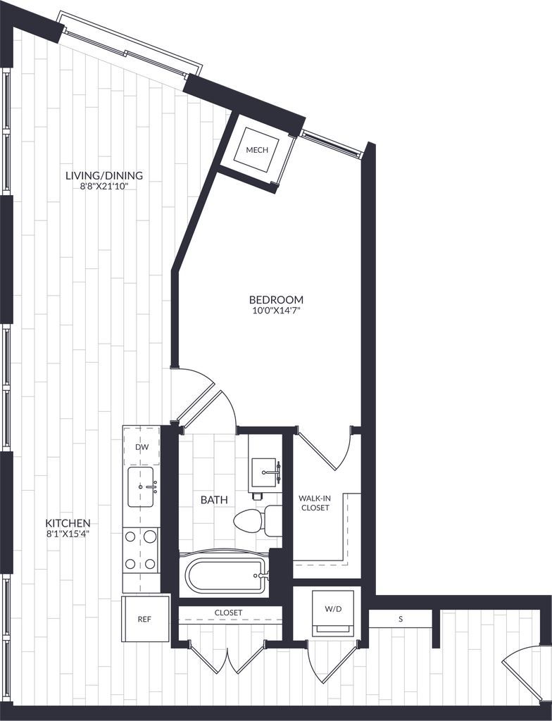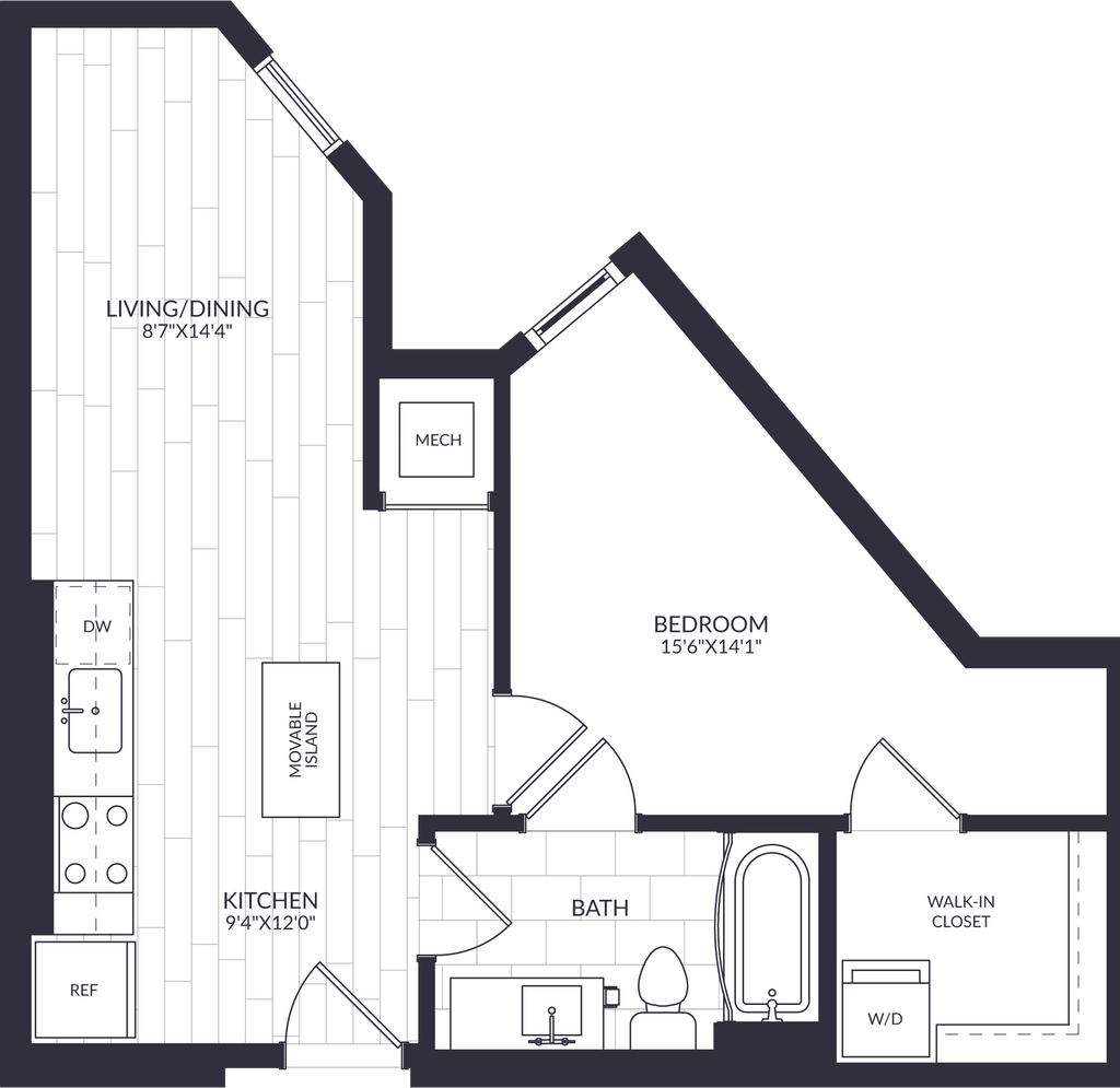 1 Bed, 1 Bath, 581 sq ftAvailable NowModel Gallery
