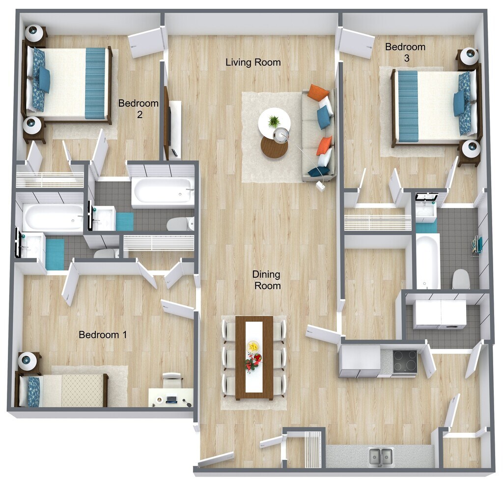 3 Beds, 3 Baths, 1172 sq ftLargest 3 BedroomThis is the largest 3 Bedroom at this PropertyAvailability Details