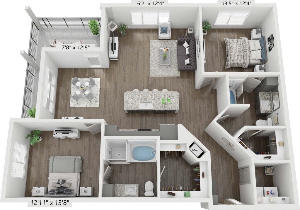 1 Bed, 1 Bath, 663 sq ftAvailable NowModel Gallery