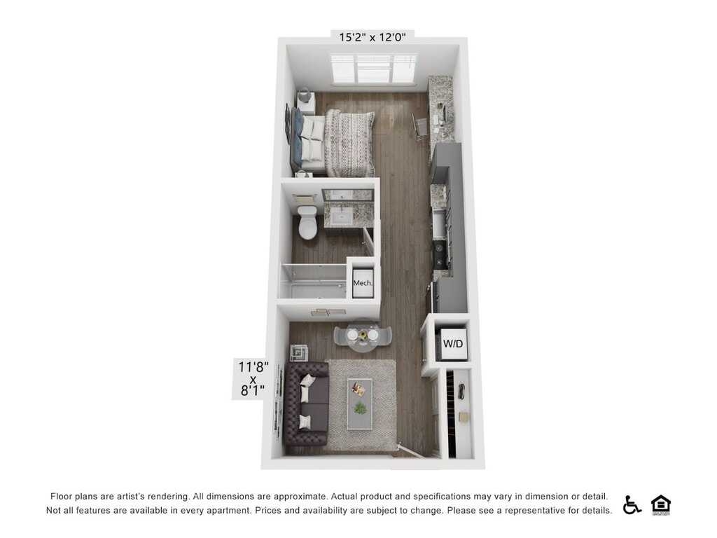 Apartment Model: S1From $1,050Studio, 1 Bath, 506 sq ftAvailable December 9, 2025Floor plans are artist's rendering. All dimensions are approximate. Actual product and specifications may vary in dimension or detail. Not all features are available in every rental home. Prices and availability are subject to change. Base rent is based on monthly frequency. Additional fees may apply, such as but not limited to package delivery, trash, water, amenities, etc. Deposits vary. Please see a representative for details.