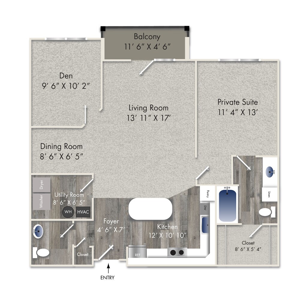 1 Bed, 1.5 Baths, 1046 sq ftModel Gallery