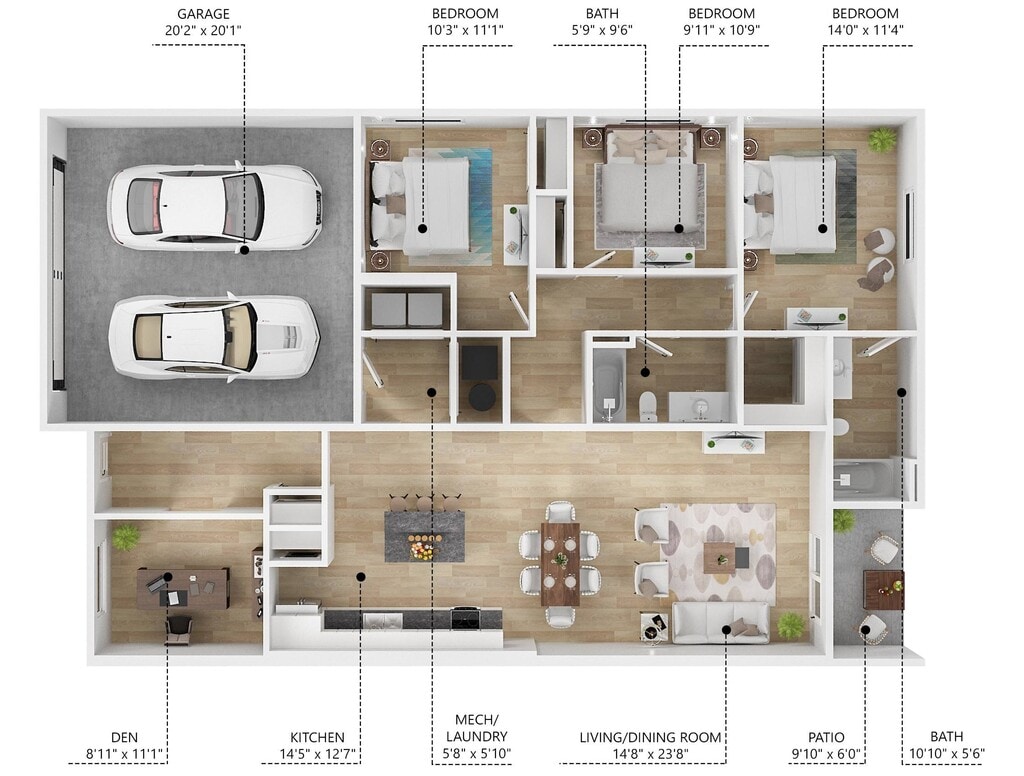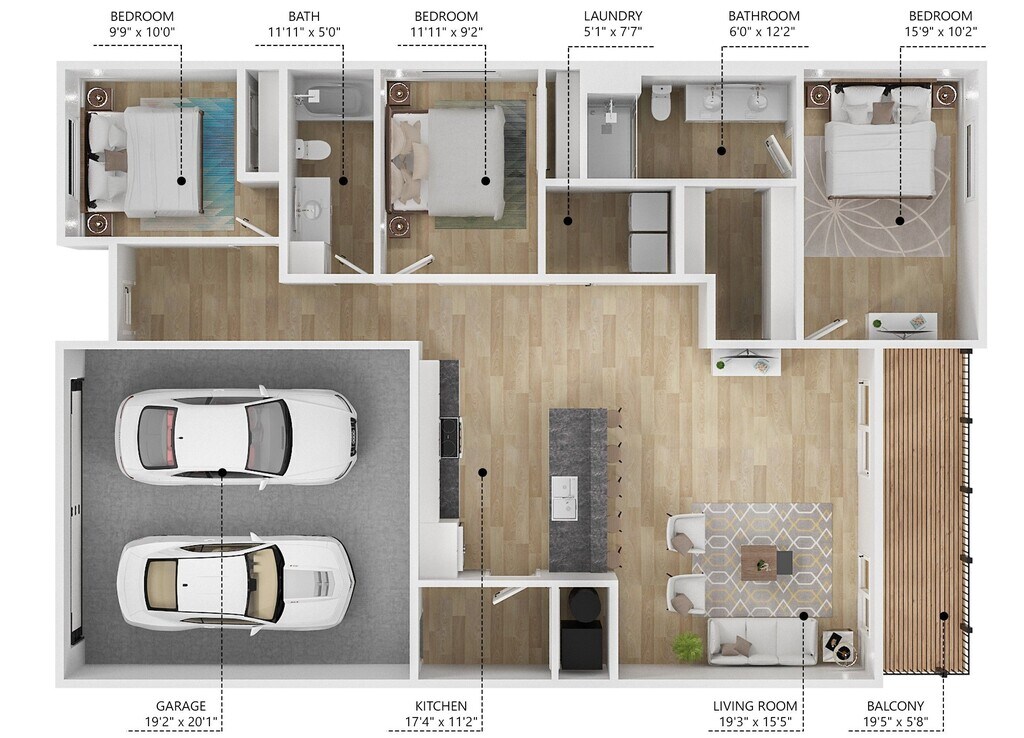 3 Beds, 2 Baths, 1330 sq ftTotal Monthly PriceAvailable NowCheapest 3 BedroomThis is the cheapest 3 Bedroom at this PropertyModel Gallery