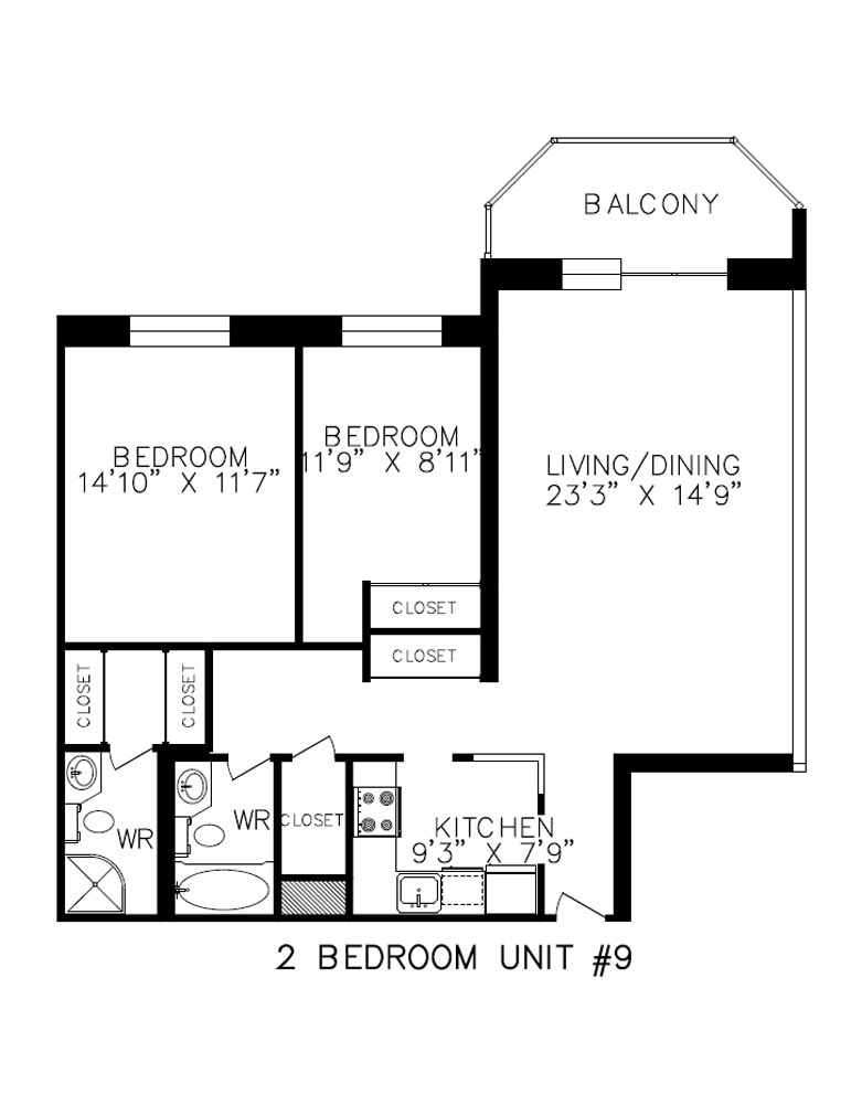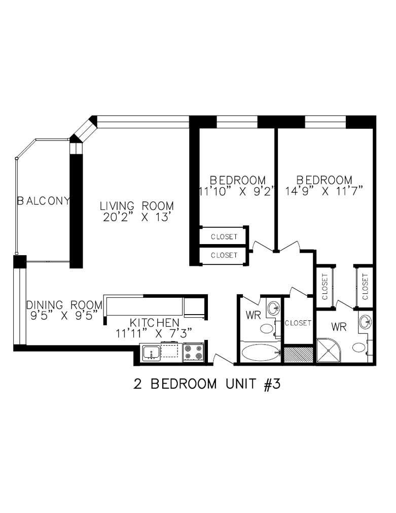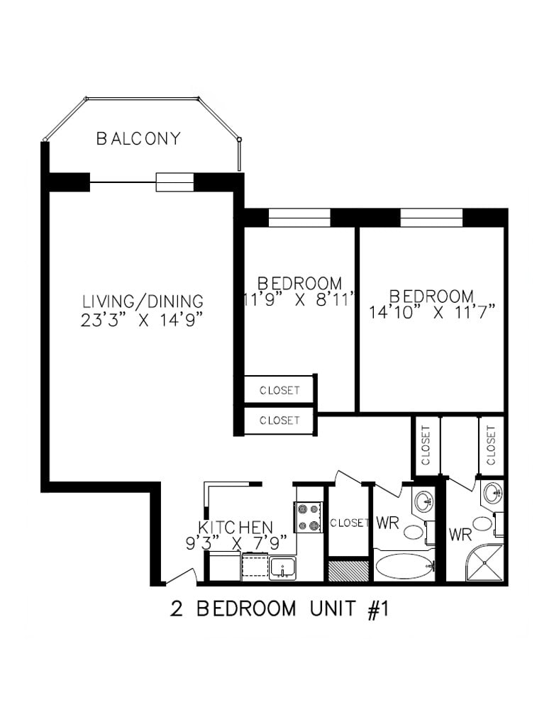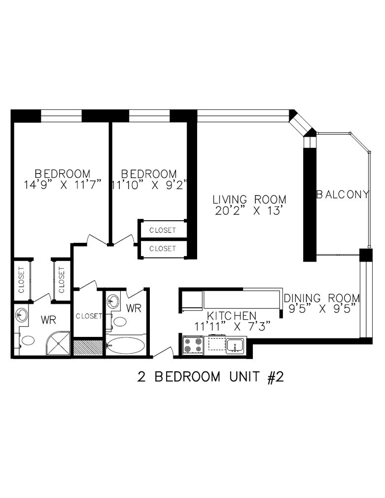 1 Bedroom - Floorplan 3 2 Bedrooms