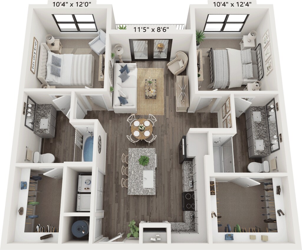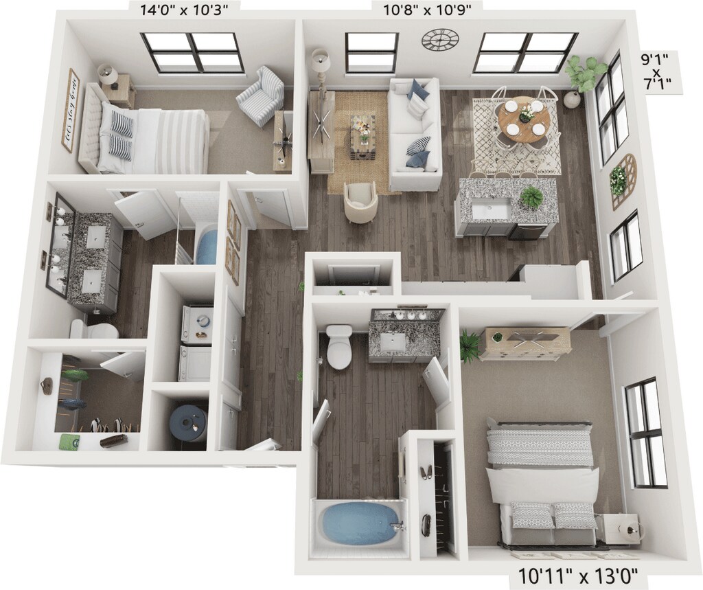 2 Beds, 2 Baths, 1050-1051 sq ftAvailable NowCheapest 2 BedroomThis is the cheapest 2 Bedroom at this PropertyModel Gallery