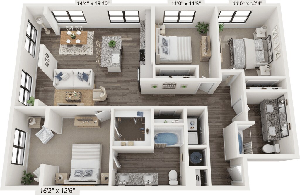 Apartment Model: B3From $1,5502 Bedroom, 2 Bath, 1050-1051 sq ftAvailable Now![]()