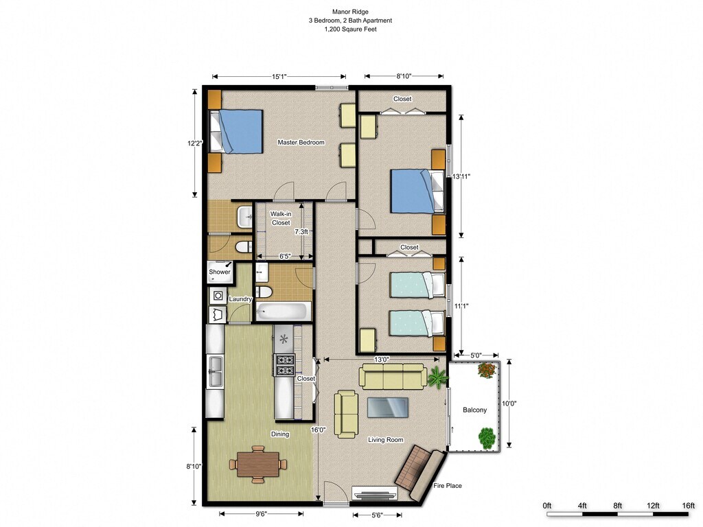 Apartment Model: C1From $1,5993 Bedroom, 2 Bath, 1200 sq ftAvailable Now![]()