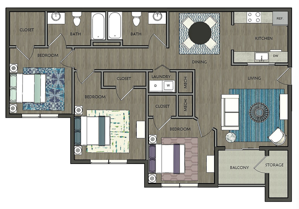 Apartment Model: The Waterford 3 BedroomCall For Rates3 Bedroom, 2 Bath, 1221 sq ftUnavailable![]()