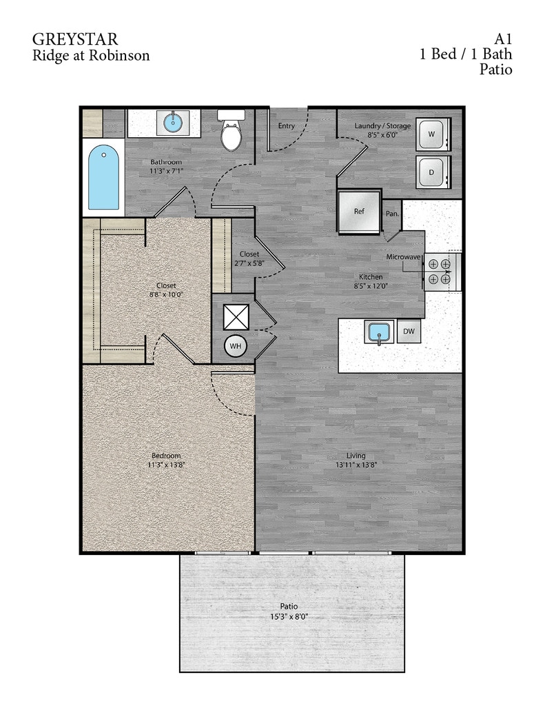 Apartment Model: A1From $1,5581 Bedroom, 1 Bath, 750 sq ftAvailable NowFloor plans are artist's rendering. All dimensions are approximate. Actual product and specifications may vary in dimension or detail. Not all features are available in every rental home. Prices and availability are subject to change. Base rent is based on monthly frequency. Additional fees may apply, such as but not limited to package delivery, trash, water, amenities, etc. Deposits vary. Please see a representative for details.
