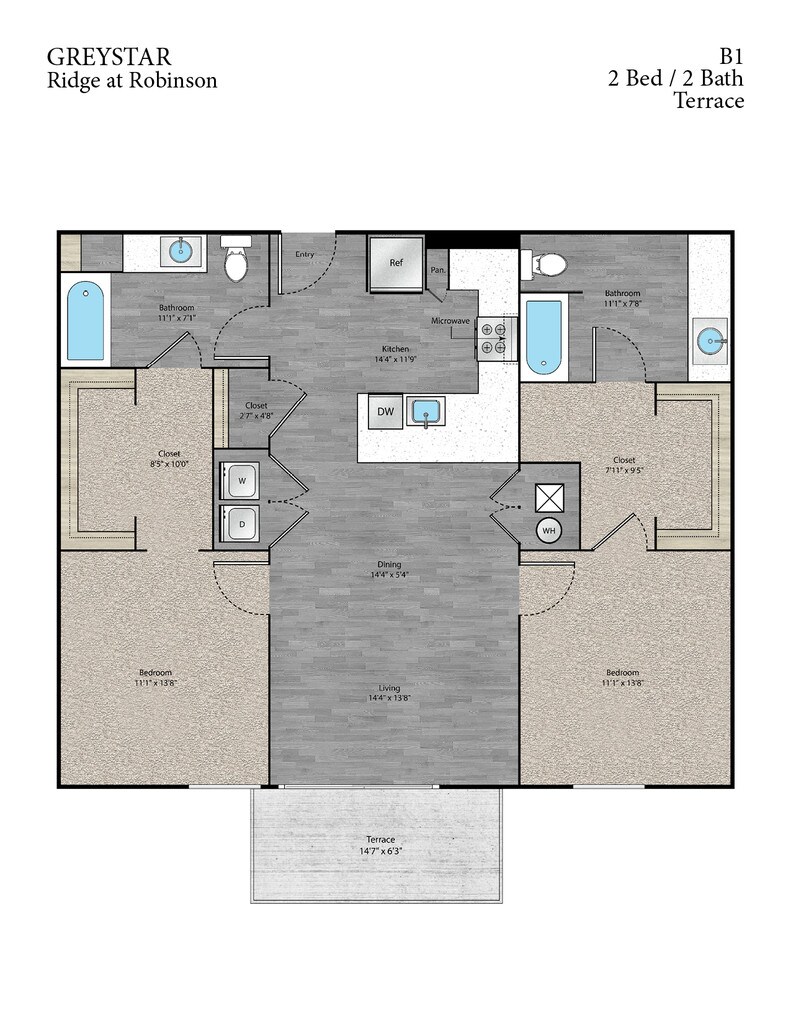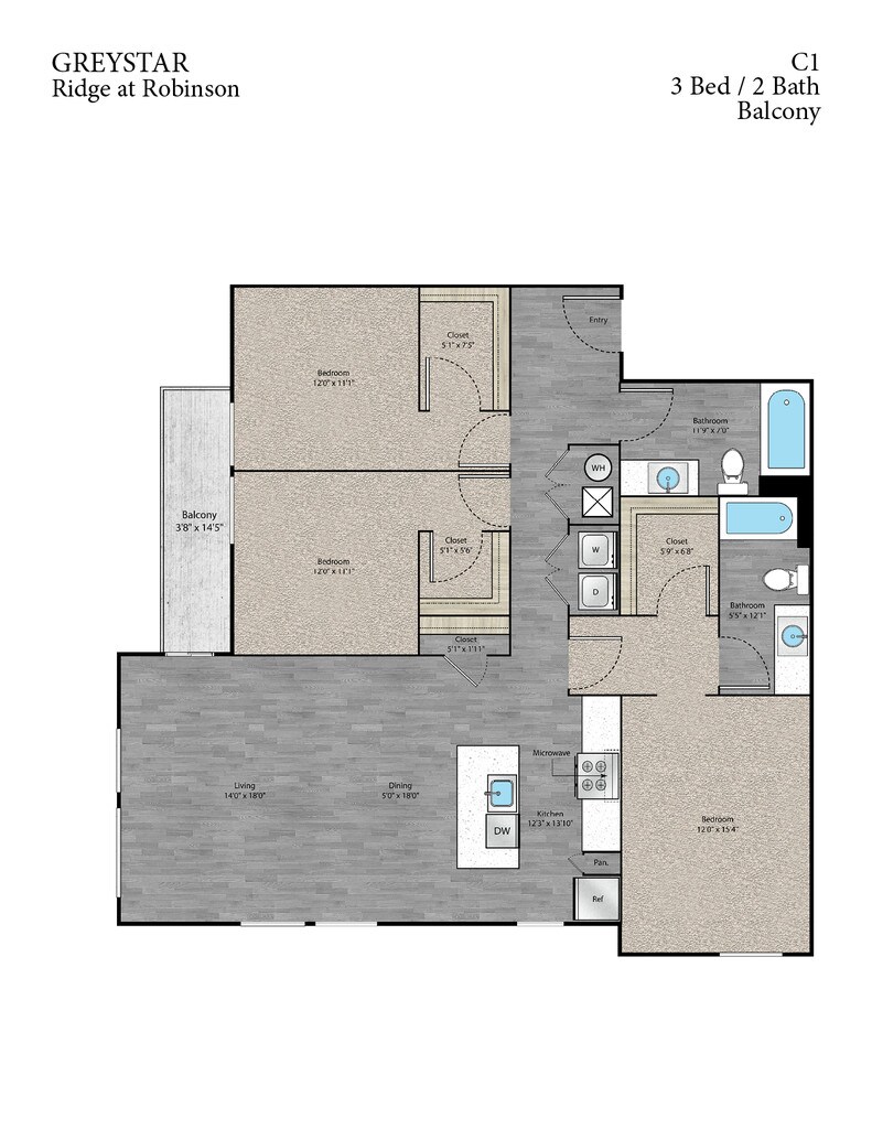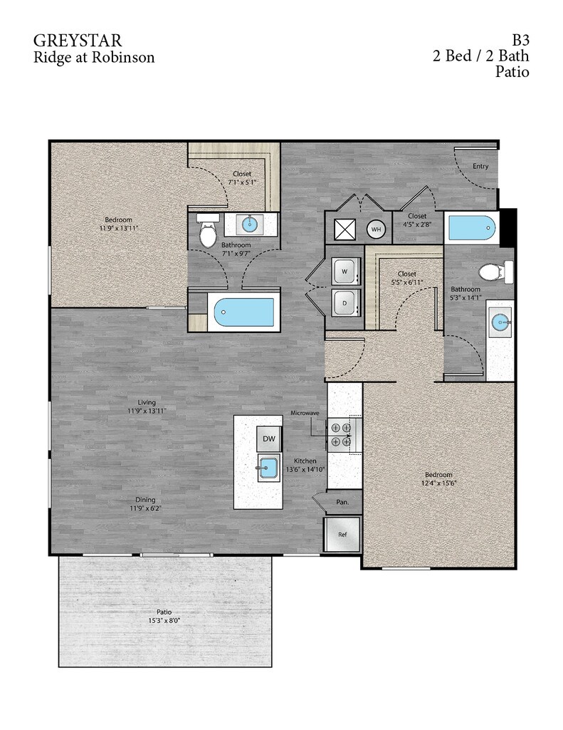 Ridge at Robinson offers 1 to 3 Bedroom apartments starting from $1,558 and having 750–1,510 sq ft. Here is the current pricing and availability: