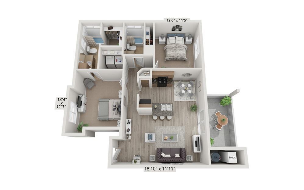 B2B Deluxe - Floorplan 14 Apartment Unit: 6240-201Apartment Model: B2B Deluxe$1,6952 Bedroom, 2 Bath, 972 sq ftAvailable NowFloorplan B2C