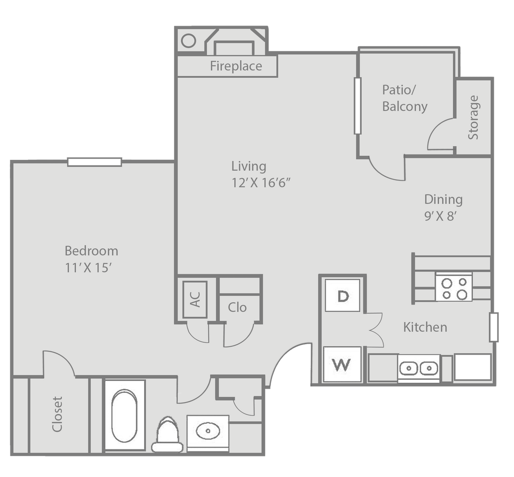 1 Bed, 1 Bath, 540 sq ftAvailable NowModel Gallery