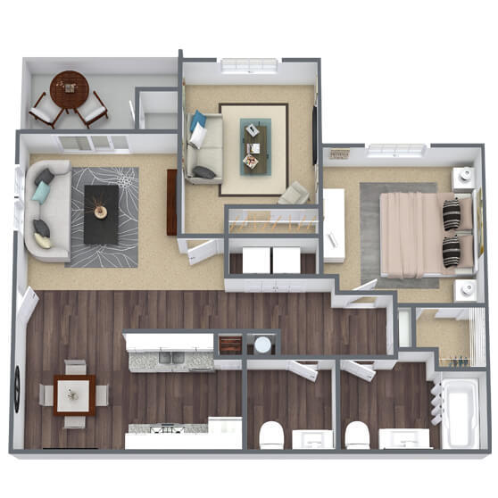 2 Beds, 2 Baths, 971 sq ftAvailable NowLargest 2 BedroomThis is the largest 2 Bedroom at this PropertyModel Gallery