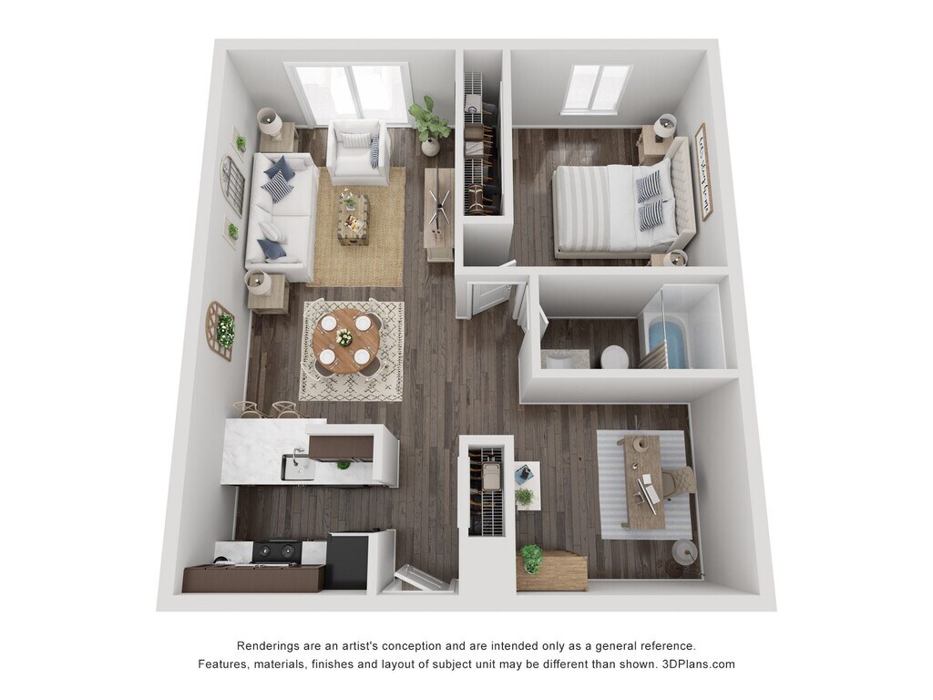 Apartment Model: A1 - 1 Bed 1 Bath w/ DenFrom $1,0091 Bedroom, 1 Bath, 720 sq ftAvailable Now![]()