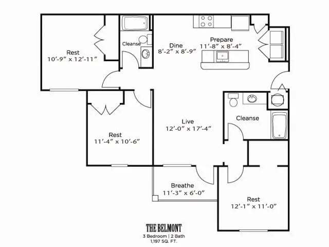 Apartment Model: The Belmont3 Bedroom, 2 Bath, 1197 sq ftAvailable NowThe Belmont - Floorplan 1 Apartment Unit: 423Apartment Model: The Belmont3 Bedroom, 2 Bath, 1197 sq ftAvailable NowApartment Unit: 433Apartment Model: The Belmont3 Bedroom, 2 Bath, 1197 sq ftAvailable November 5, 2025The Madison