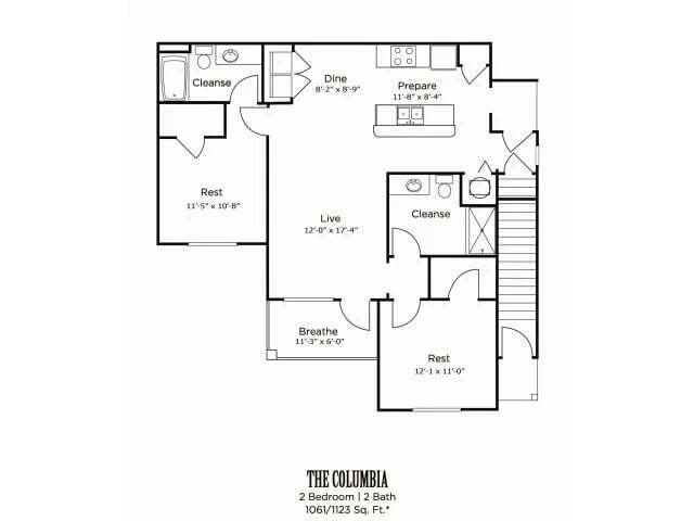 Apartment Model: The Columbia2 Bedroom, 2 Bath, 1123 sq ftUnavailableThe Columbia - Floorplan 1 3 Bedrooms
