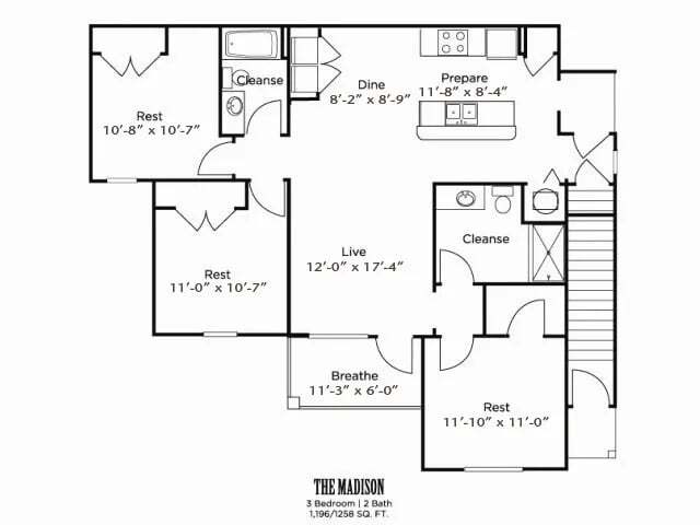 3 Beds, 2 Baths, 1196-1258 sq ftAvailability Details