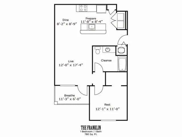Apartment Model: The Franklin1 Bedroom, 1 Bath, 780 sq ftUnavailableThe Franklin - Floorplan 1 2 Bedrooms