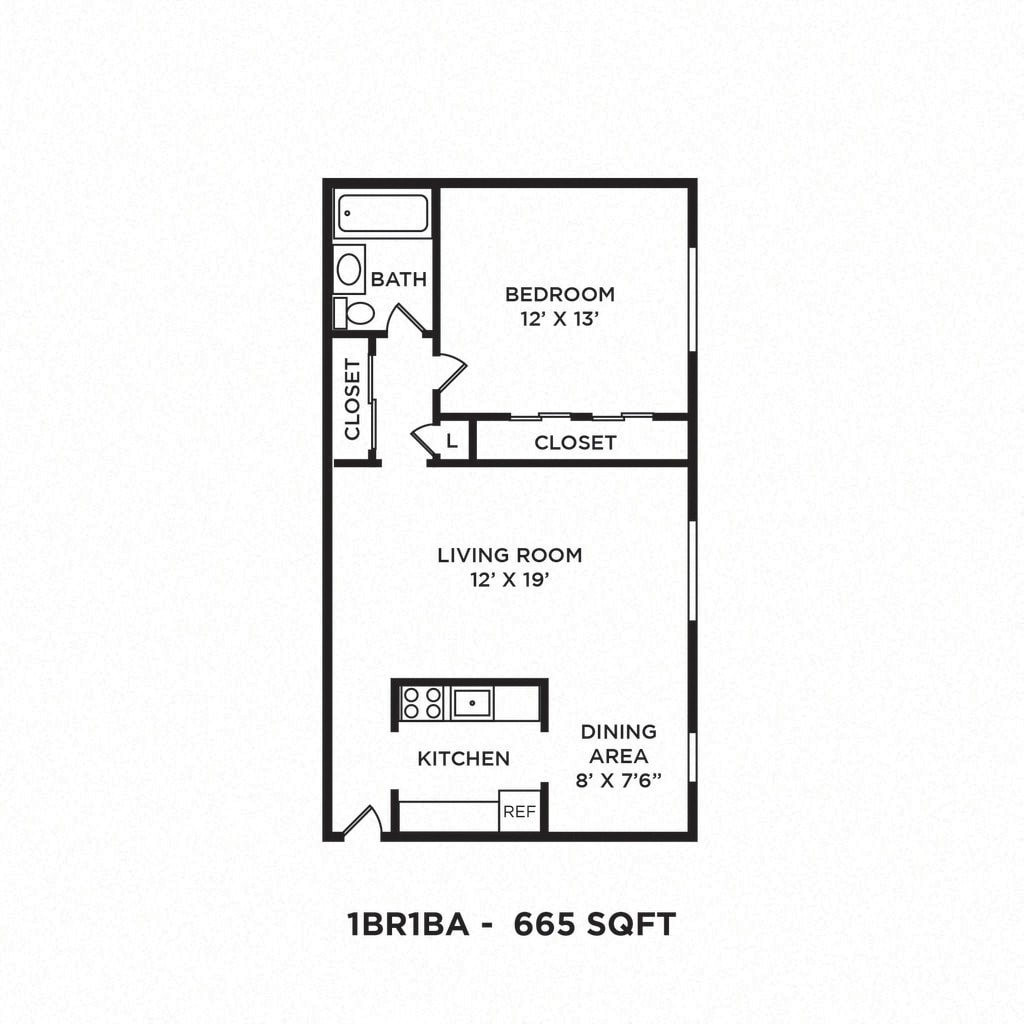 One Bedroom - 672 sqft Antietam Arms - Floorplan 1 ![]()