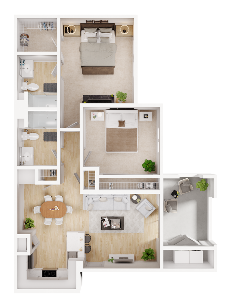 2 Beds, 2 Baths, 1081 sq ftAvailable NowModel Gallery