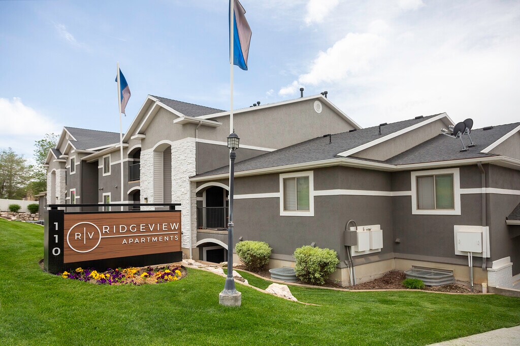 Ridgeview Apartments is conveniently located near the I-15 entrance, Highway 89, City Creek, Lagoon and Salt Lake International Airport. The beautiful grounds feature lush landscaping and grassy areas for relaxing and playing with your 4 legged friends. 1-, 2-, and 3-bedroom apartments include the following great amenities: spacious floorplans, modern appliances, washer/dryer hookups, and storage in select units. Don't delay; call today to schedule a tour of your new home here at Ridgeview Apartments!