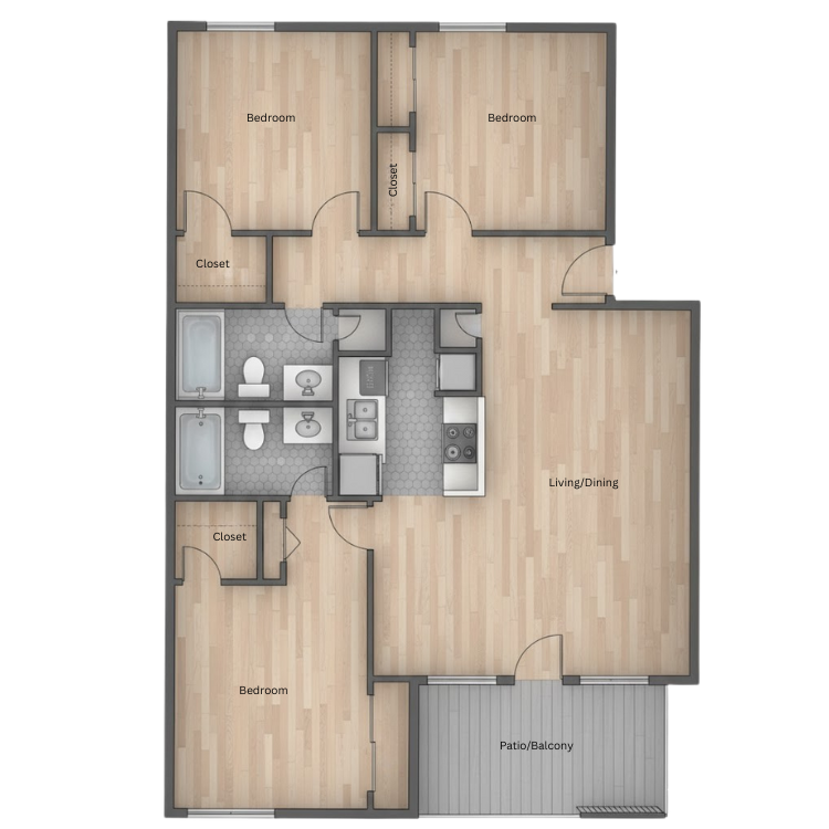 Apartment Model: C1From $1,3503 Bedroom, 2 Bath, 1185 sq ftAvailable February 12, 2026![]()