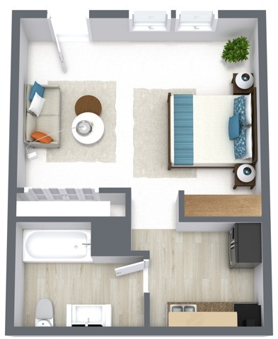 Studio, 1 Bath, 288 sq ftModel Gallery